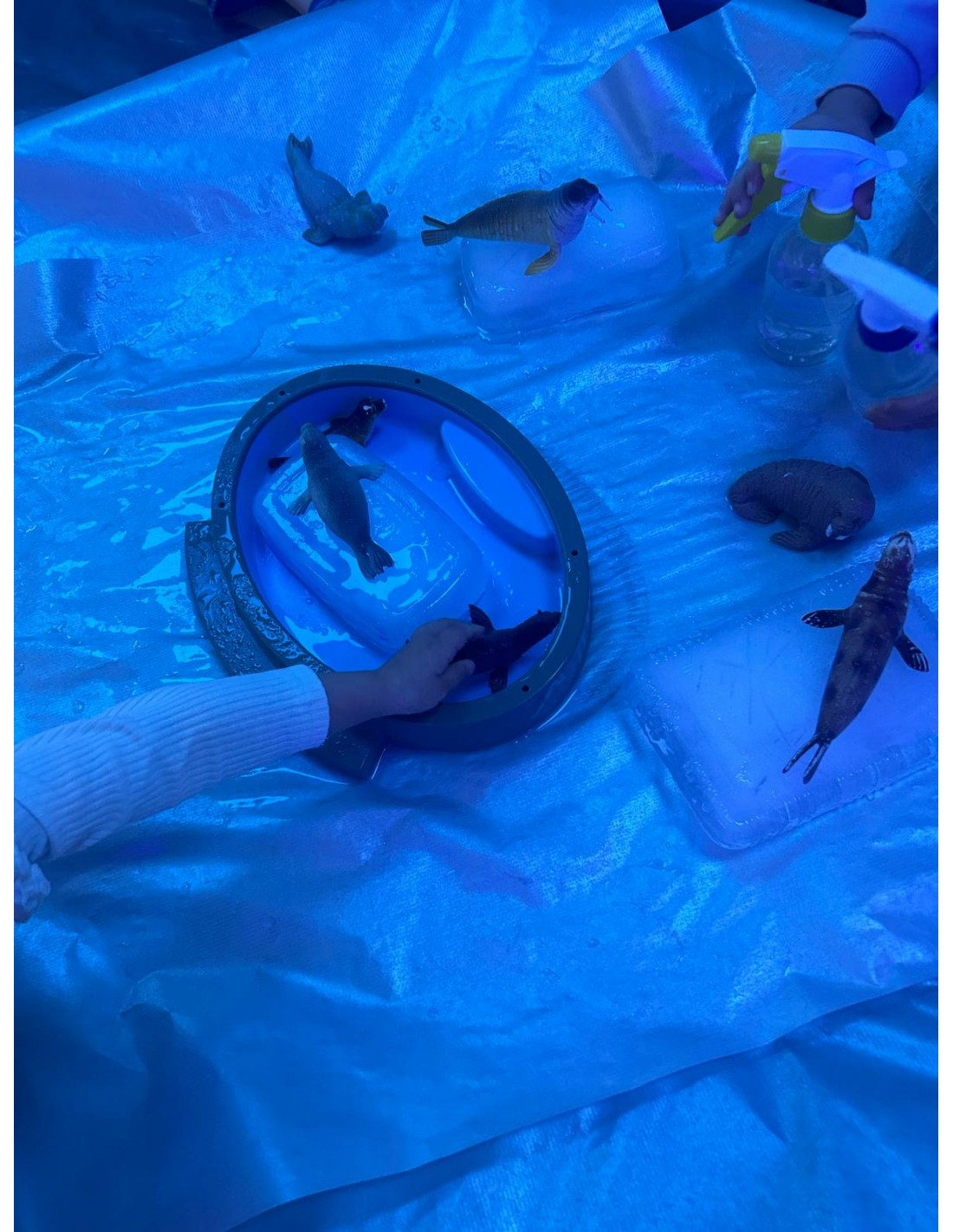 Un espacio para dejarse sorprender por el invierno, explorando luces, texturas y formas que recuerdan el frío y la nieve. Una propuesta llena de luz que fomenta la curiosidad, la creatividad y el juego autónomo.